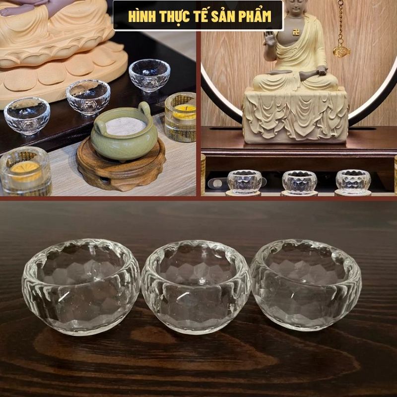 Chén Nước Cúng Phật Bằng Thủy Tinh – Ly Cúng Dường Nhiều Kích Cỡ, Đồ Thờ Cúng Phật Giáo Trang Nghiêm