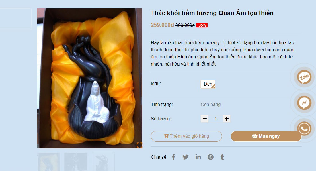 Giá thác khói trầm hương Quan Âm tọa thiền tại đây đang được ưu đãi giảm đến 35%, chỉ 259.000đ.