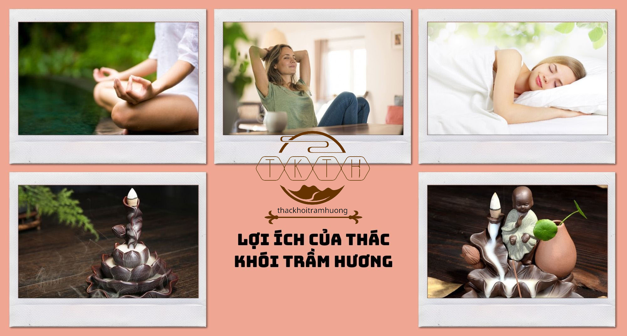 - Sử dụng thác khói trầm hương, nhìn làm khói chảy trôi bềnh bồng, đó không chỉ là thú vui tao nhã mà còn mang đến nhiều lợi ích khác. Hương thơm thanh khiết từ thác khói trầm hương sẽ góp phần hóa giải những điềm xui, thu dẫn phúc lộc, vượng khí cho gia chủ.