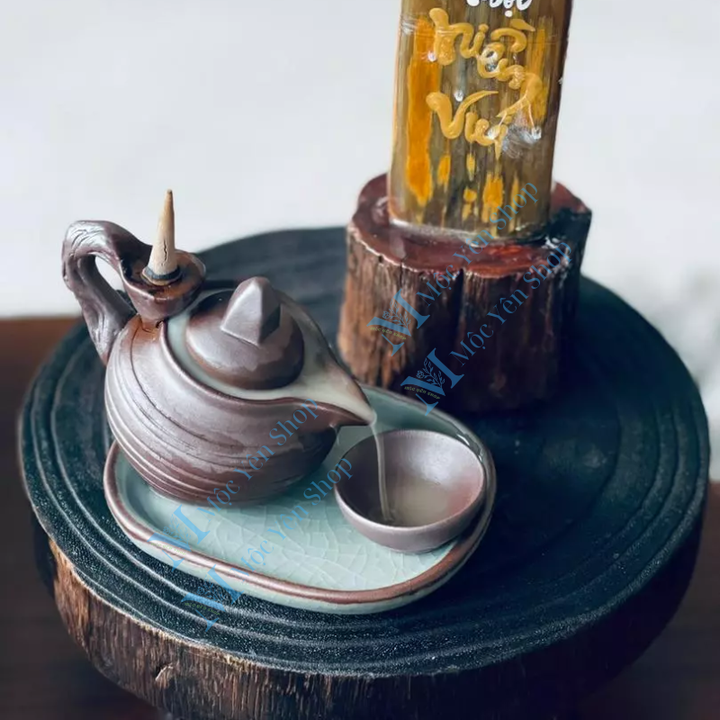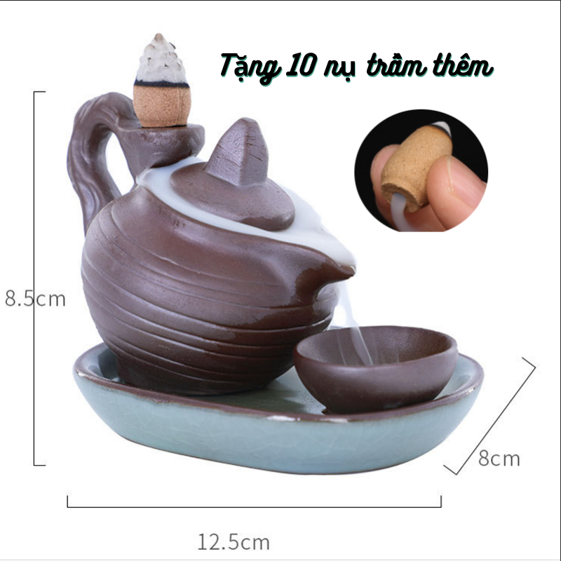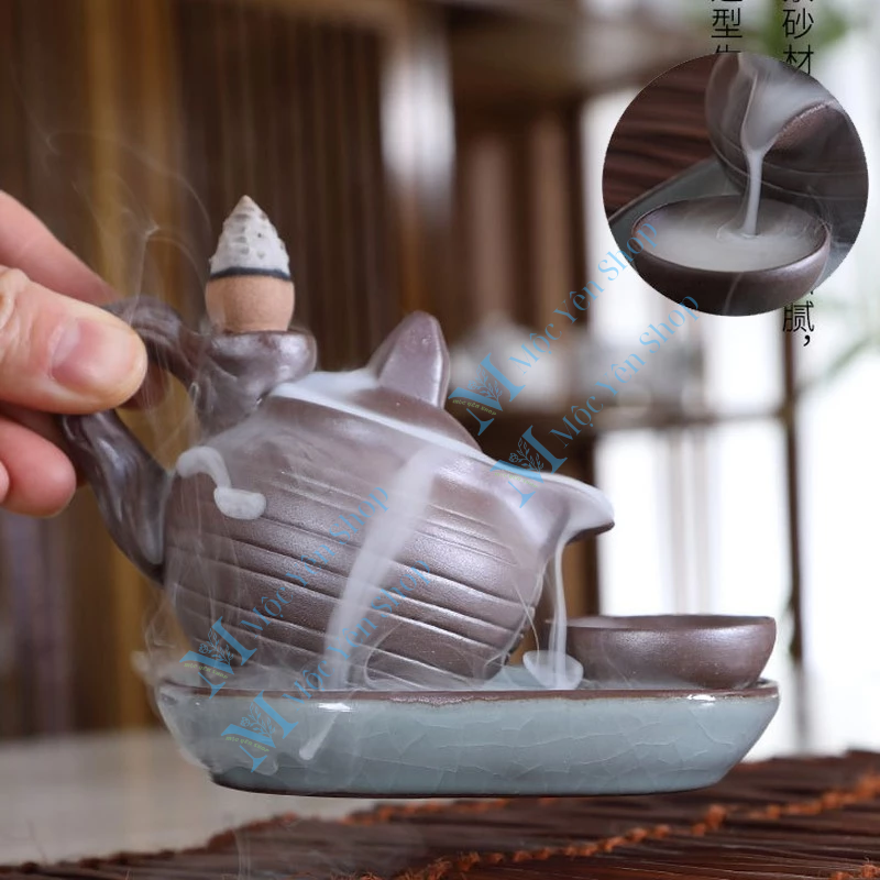 Thác Khói Trầm Hương Mẫu Ấm Trà là một trong những mẫu thác khói gốm sứ cao cấp được yêu thích nhất hiện nay. Với thiết kế tinh xảo mô phỏng hình ảnh chiếc ấm trà nhỏ nhắn, dòng khói trắng nhẹ nhàng chảy ngược từ miệng ấm xuống đĩa, tạo nên hiệu ứng “dòng trà khói” vừa ảo diệu vừa thư thái. Đây không chỉ là dụng cụ đốt trầm nụ mà còn là tác phẩm nghệ thuật trang trí phong thủy đầy ý nghĩa.