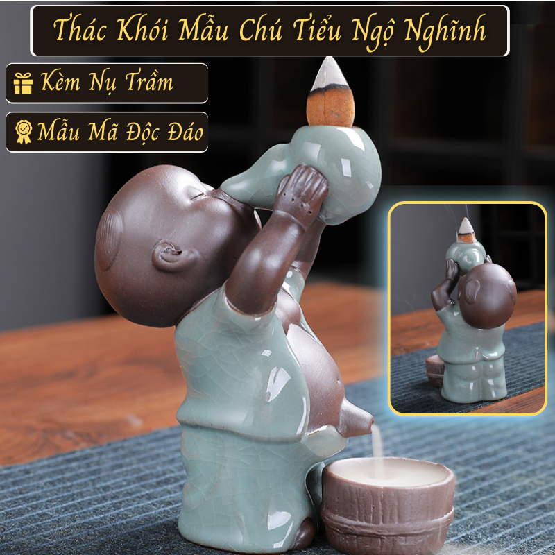 Thác Khói Trầm Hương Mẫu Chú Tiểu Ngộ Nghĩnh – Gốm Sứ Cao Cấp, Mang Lại Năng Lượng Bình An Cho Không Gian Sống