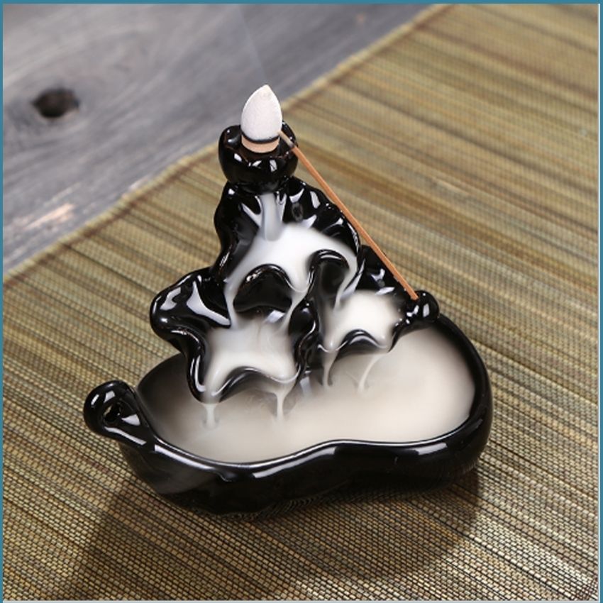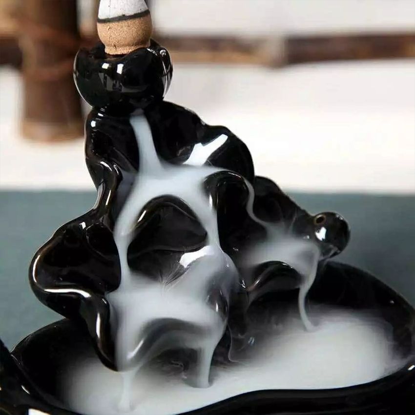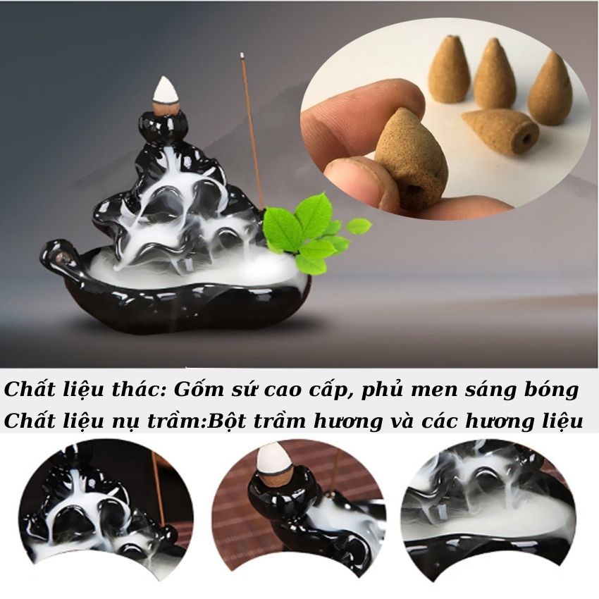 👉Chất liệu Thác khói : gốm cao cấp phủ sơn cách nhiệt. Tạo hình đài sen. Màu đen