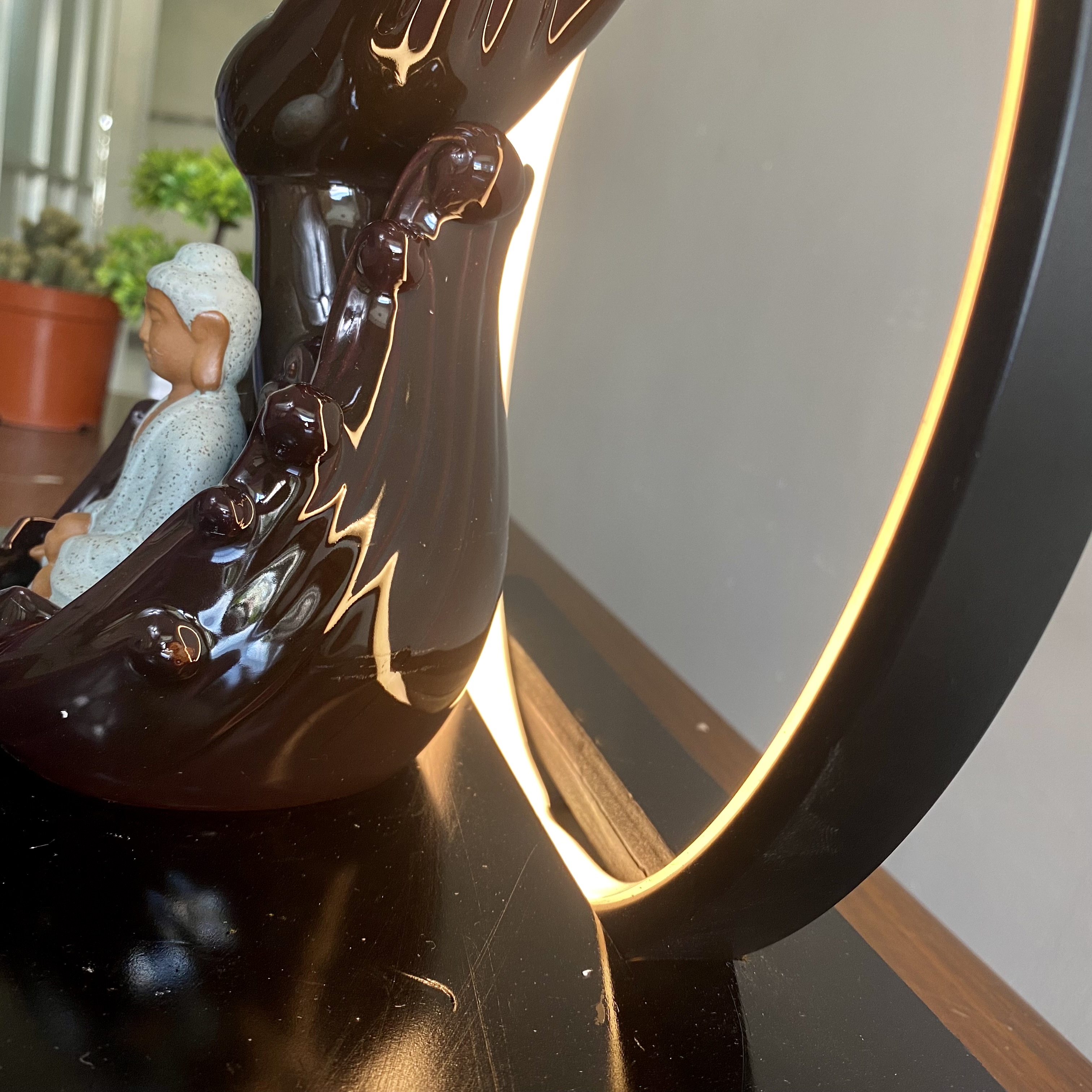 Giới thiệu sản phẩm Thác khói trầm hương Mẫu Như Lai kết hợp kệ đèn Led chỉnh màu