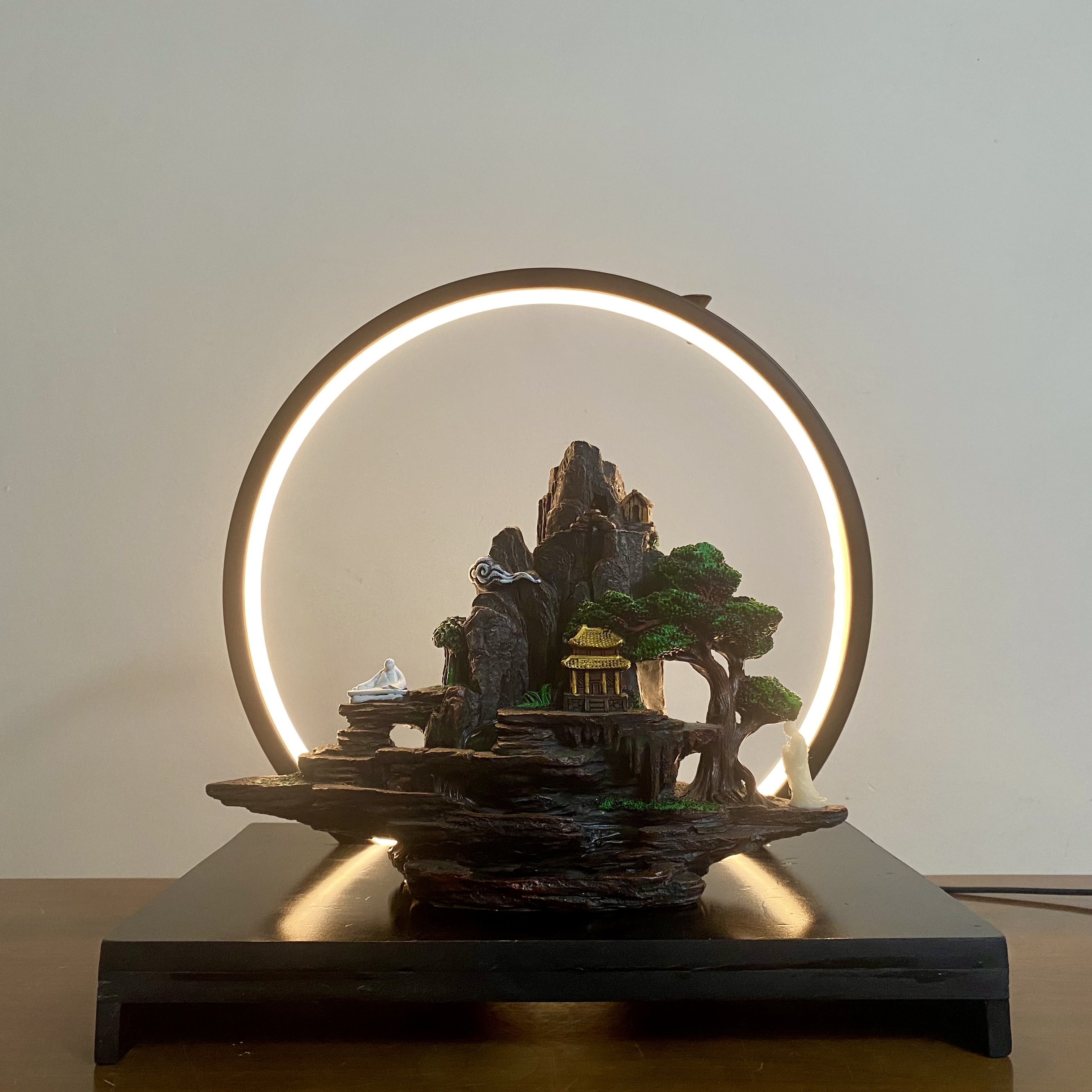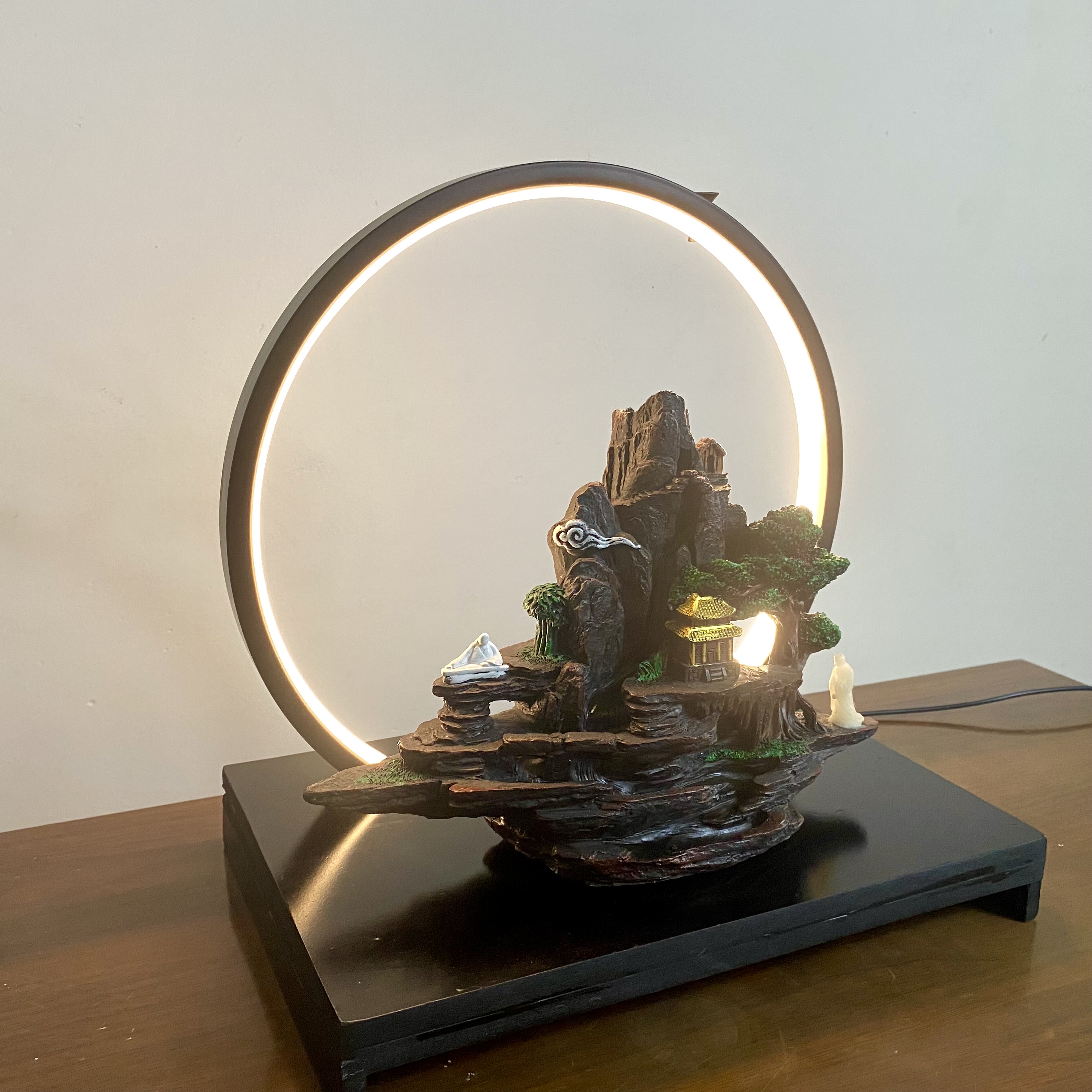 Thác khói trầm hương Mẫu Tiểu Cảnh Kết hợp bộ kệ đèn Led chỉnh màu