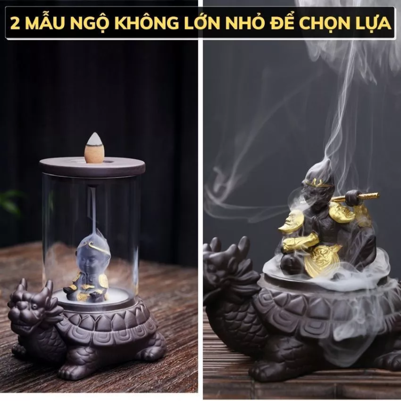 Thác khói trầm hương Ngộ Không cưỡi Long Quy là một trong những mẫu thác khói độc đáo và mang đậm yếu tố phong thủy được nhiều người yêu thích. Không chỉ đơn thuần là vật dụng dùng để đốt nhang trầm nụ, sản phẩm còn là tác phẩm nghệ thuật sống động, vừa mang tính tâm linh, vừa là vật trang trí decor sang trọng cho không gian sống của bạn.