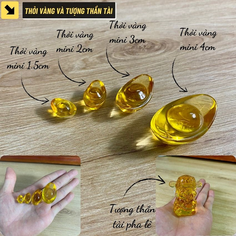 - Tượng Thần Tài pha lê: Cao 6.5cm – Ngang 4.5cm – Nặng 70g